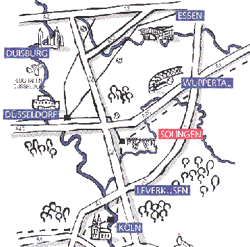 Solingen Das ist da verkehrstechnisch günstigst gelegene Provinznest Deutschlands. Solingen liegt zwischen Köln und Düsseldorf. In beiden Städten ist wirklich was los. Solingen liegt an der A3, A1